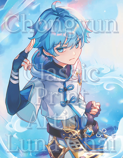 An autographed 8.5" x 11" Chongyun Classic Print signed by Beau Bridgland (artwork by Luna Chai). All signatures go on the front of the print. Personalization instructions listed below.